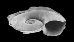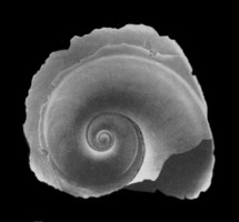 Figure. Scanning electron micrograph of Atlanta fragilis shell photographed from the right side (see above) in tilted view. From Richter and Seapy (1999, fig. 7A). © 1999 G. Richter