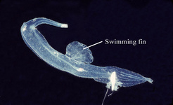Figure. Pterotrachea coronata. Left: swimming fin in female, viewed from right side of body. Right: swimming fin and sucker in male, viewed from right side. © R. R. Seapy